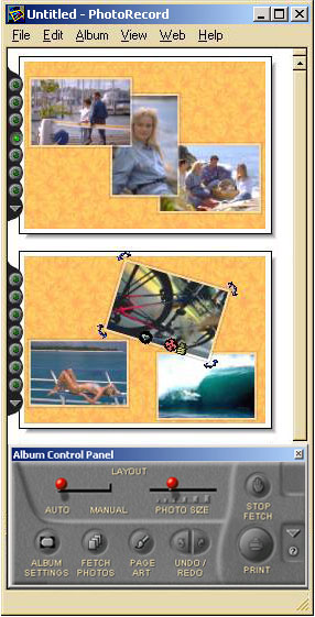 ![]() PhotoRecord enables you to make and print beautiful photo albums easily and gives you great results every time. It runs on an ordinary Windows PC, yet it can process and print highly sophisticated albums containing lots of large digital images, thanks to the power of CISRA's OpenPage technology. With a huge range of frames and backgrounds you can produce professional quality albums with ease. | |