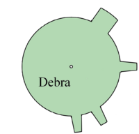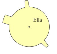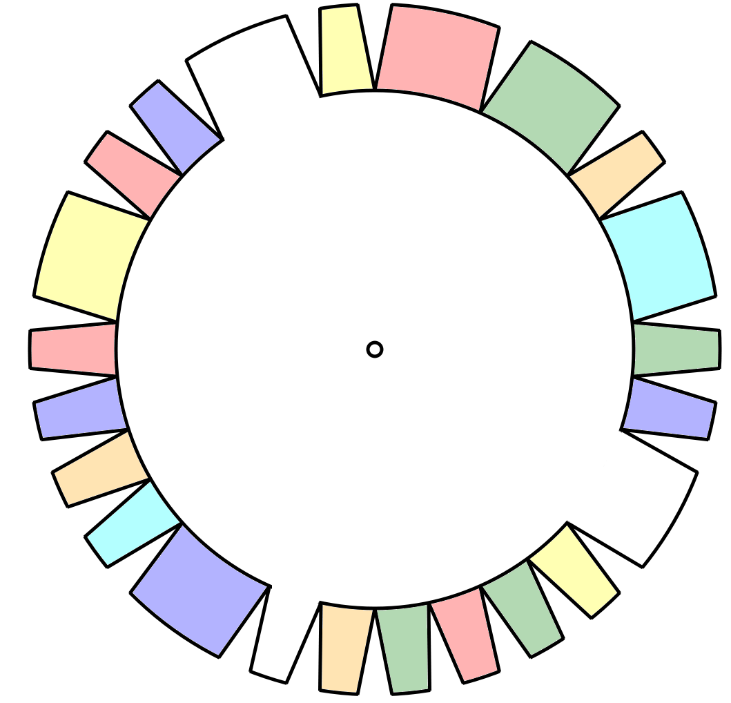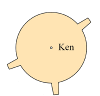 If you convert the distances between cogs into letters (using 1=A, 2=B, etc.), the cogs joined to the central circle spell "ken", which is one of the names written on the gear. You might arrive at this by counting around the cogs, or by looking at properties of the names written on the gear - all six names have the property that if you convert the letters into numbers, they add up to exactly thirty.