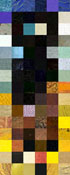 Puzzle design notes: Exactly what mosaic you get out at the end depends on a few factors: how careful you are at picking the colour swatches out of the original paintings; what versions of the painting images you use (the various copies of these paintings that can be seen on Internet sites often contain different colour balances); and whether you try to copy the colour swatches faithfully, or simply identify them broadly as "yellow" or "brown" or "blue", etc. Doing the latter can actually lead to a slightly better representation than the one shown here. We had to pick an image that could stand pixelisation to this coarse a resolution, as well as slight inaccuracies in colour swatches, and still be iconic enough to be recognisable.