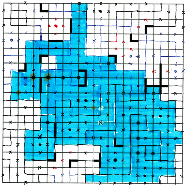 Once all the squares are solved, we look at the intersection dots. Colour