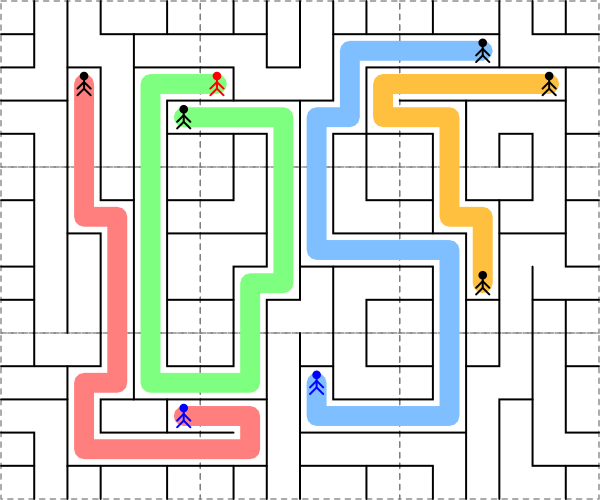 By joining the figures, the paths make rough letter shapes that spell out the word LOST - very appropriate for people stuck in a labyrinth, and the solution to the puzzle.